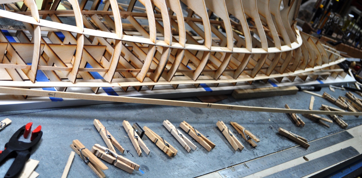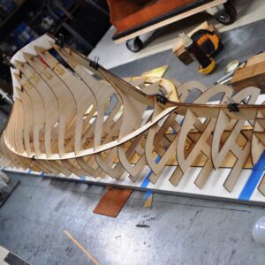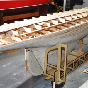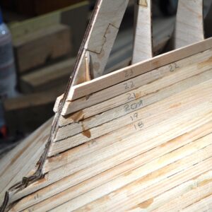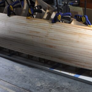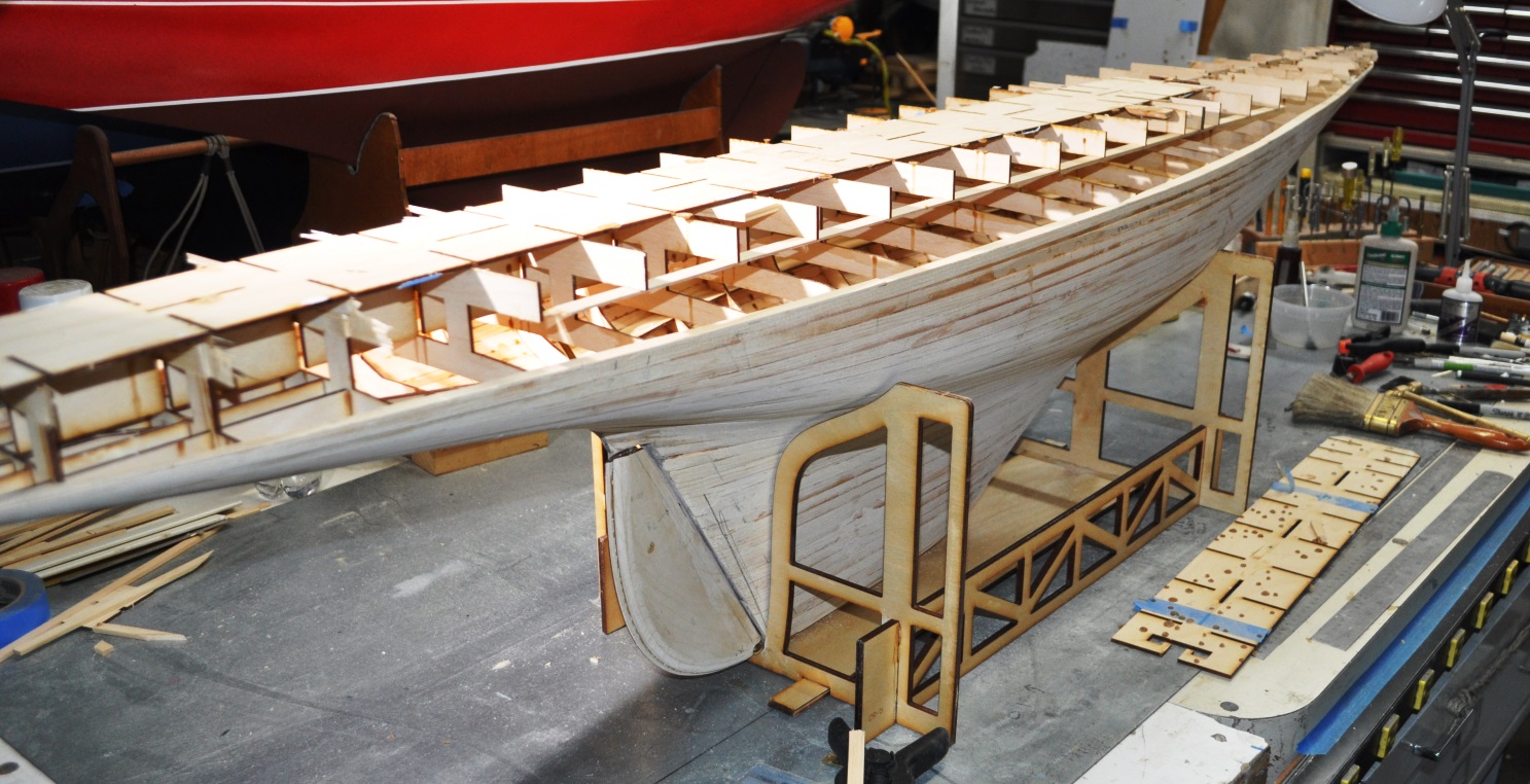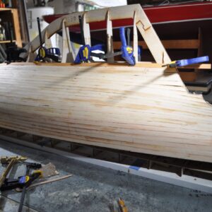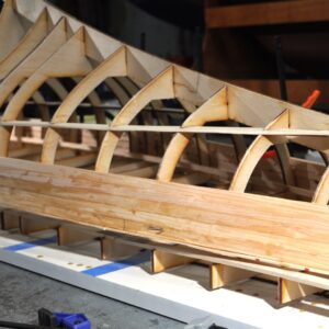 The design is intended for a 1/8″ thick hull. We do supply planking in clear pine, or walnut.