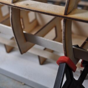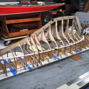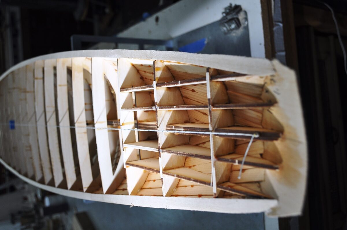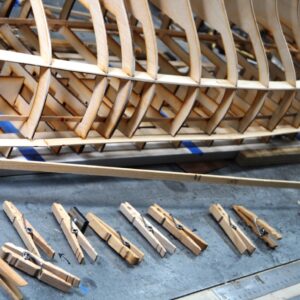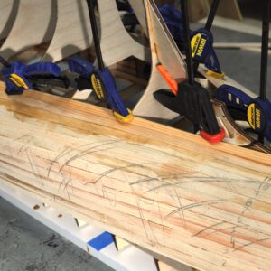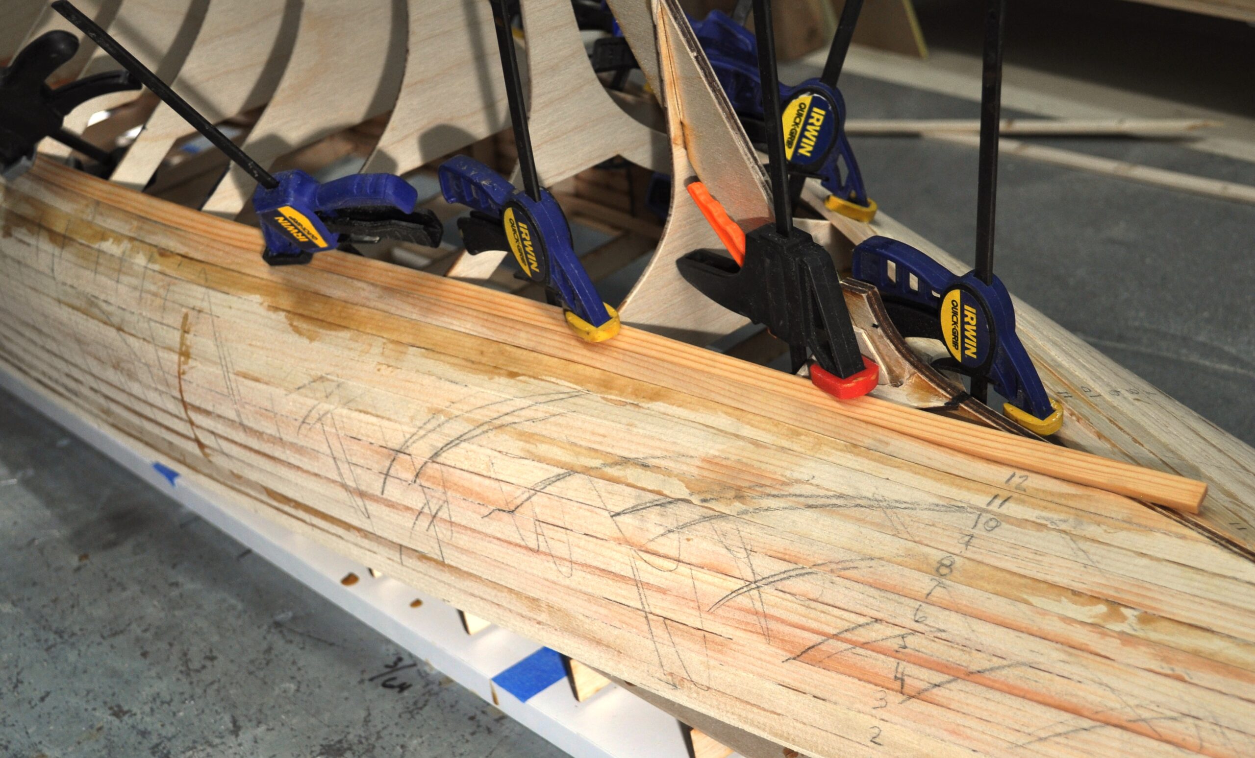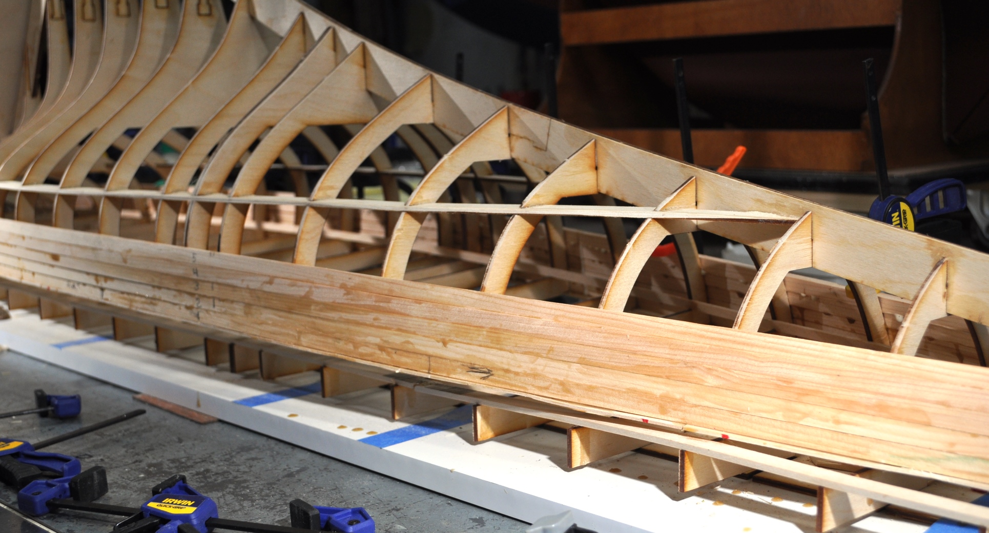 The design is intended for a 1/8″ thick hull. We do supply planking in clear pine, or walnut.