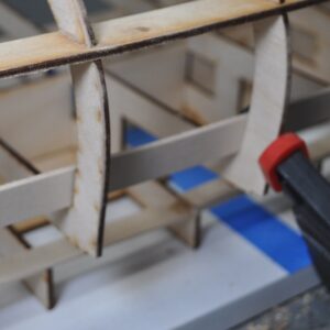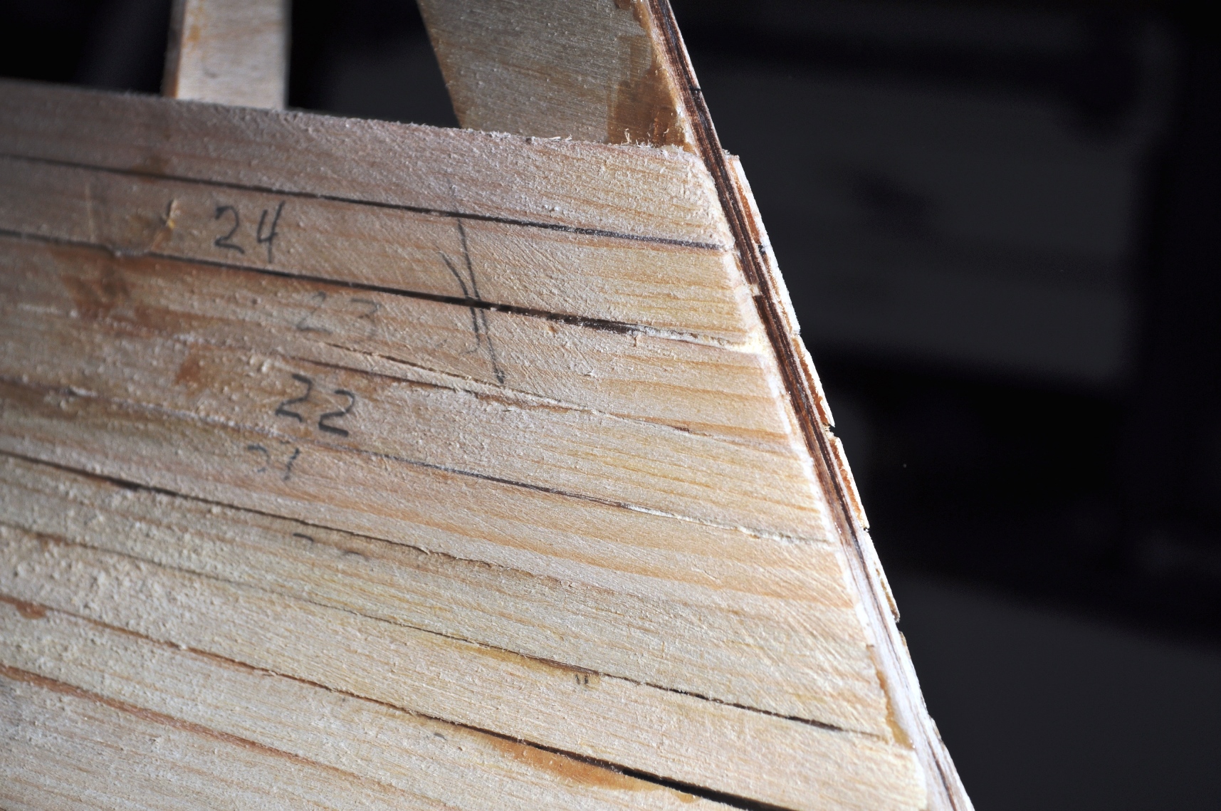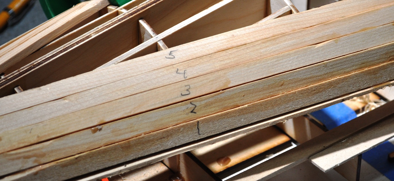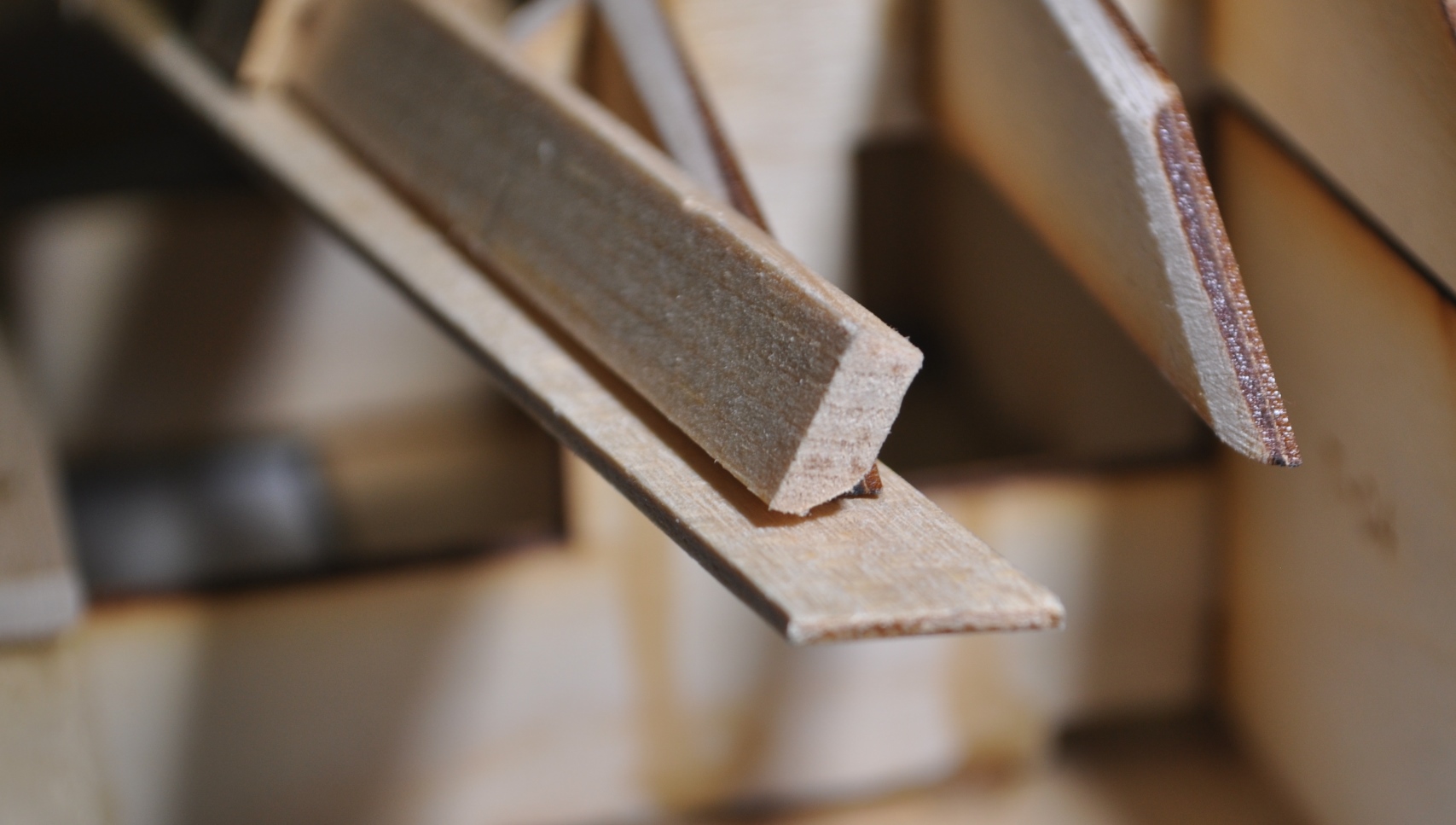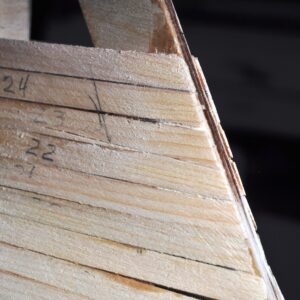 We recommend preparing 50 planks of 5/32″ x 3/8″ x 72″ for the hull and 25 planks of 1/8″ x 1/8″ x 48″ for the deck.