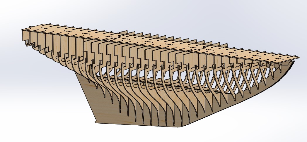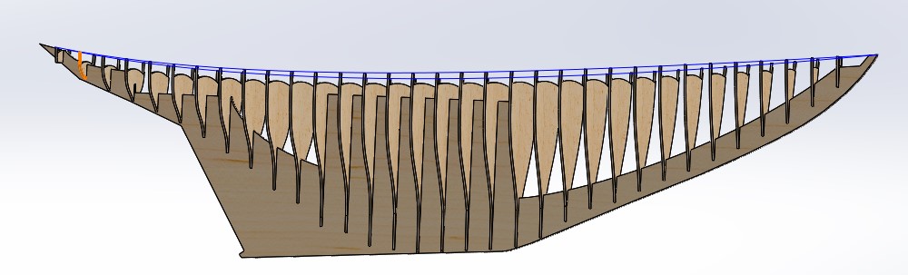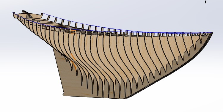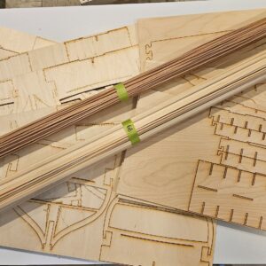 Once the alignment is completed and the keel is installed, it is time to install the stringers. Please note that the stringers are designed as decorative elements of the model. They will look really cool when the model is flipped over. This means it is important to make them look good where they will be visible but the ends themselves are not that important as they will not be seen.
