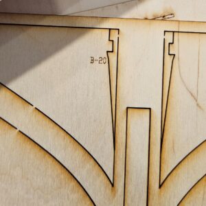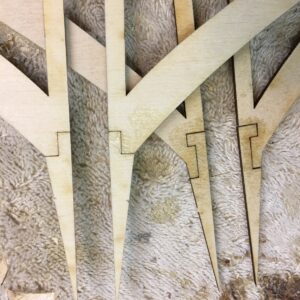 - Where frames will show on the finished model, I typically rough sand each piece. Remember that the char from the laser cutting should be removed to allow glue to penetrate properly. Fine sanding to shape will be done at a later time.
