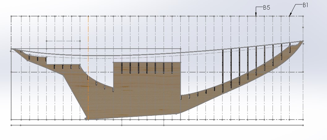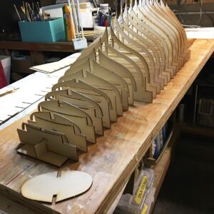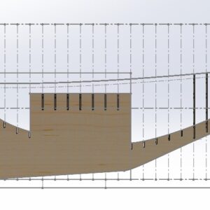 The design intent of this model was to create a hefty model that would look realistic as it sailed in a typical light breeze. This led us to increase the underwater volume slightly, and also to create a centerboard box in order to allow the insertion of external ballast. The keel is composed of four layers of 1/8″ plywood.
