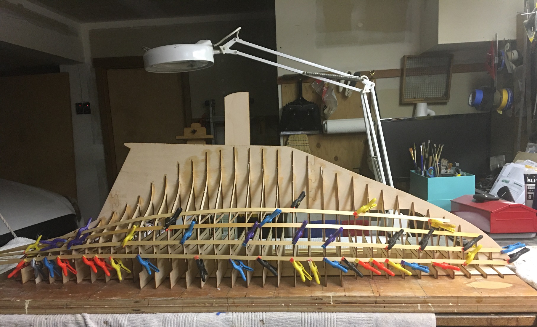 - Various very straight lengths of thin wood to use as battens to verify hull