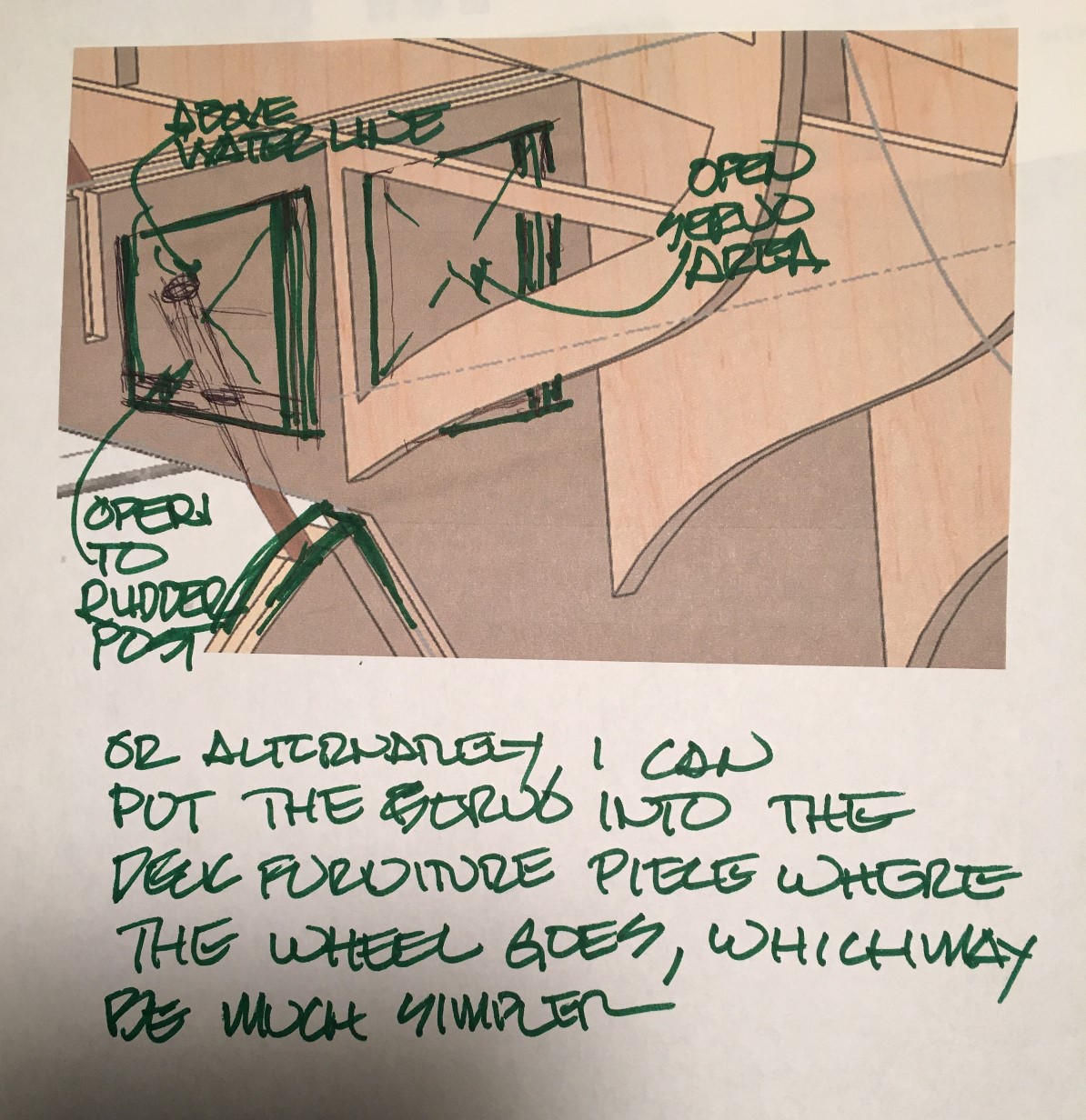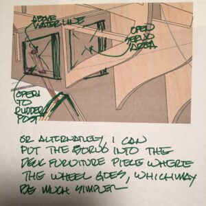 Again, while the general rudder post location is easily determined, it is critical to verify there will be room within the boat for the rudder arm as well as the rudder servo before drilling the location. Future access to the rudder arm, as well as the servo, is also an important decision at this time.